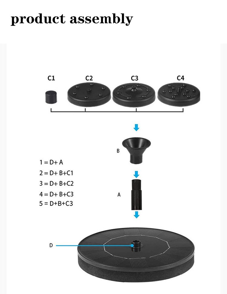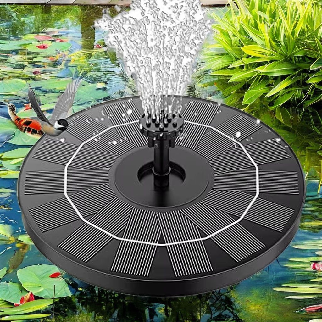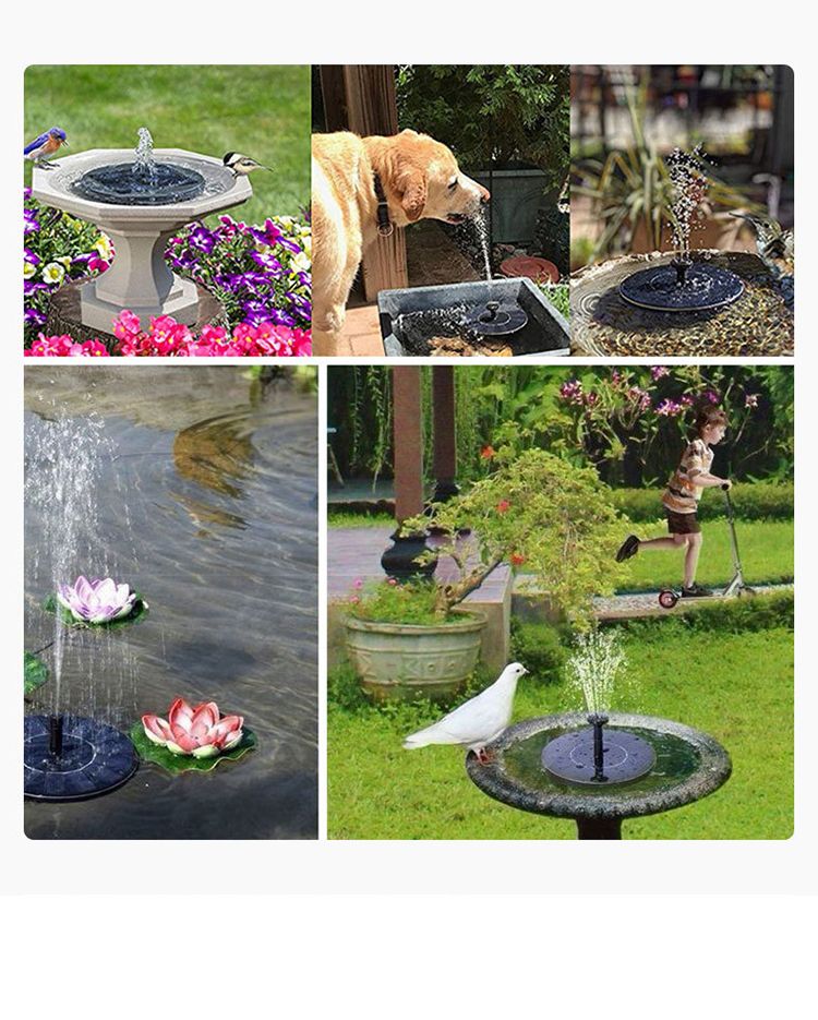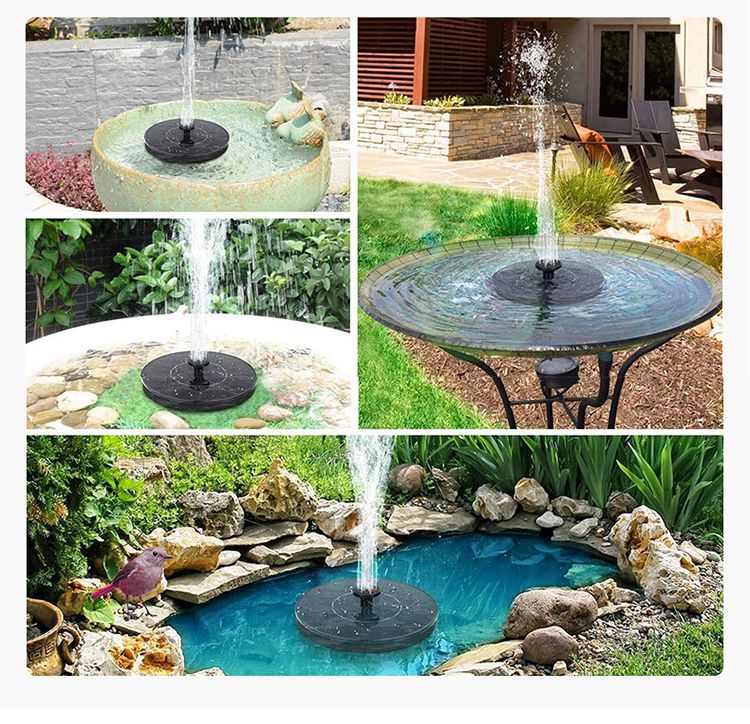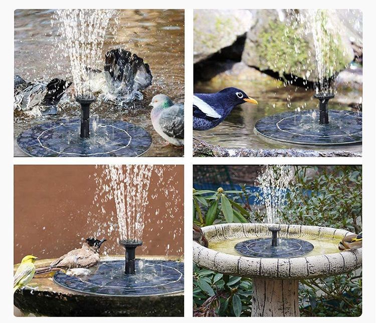 1.4W Solar Fountain with 6 Nozzles Polyresin Bird Bath for Outdoor Decor Plastic Material Pump