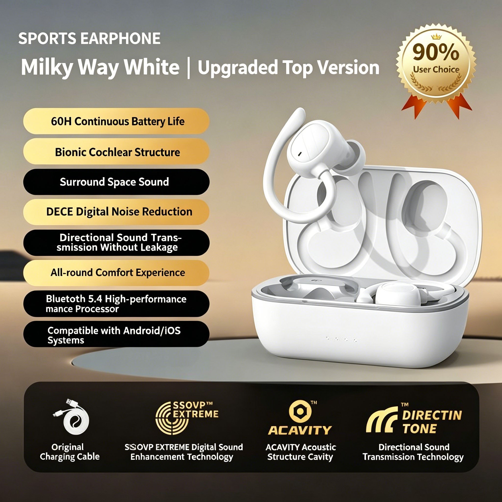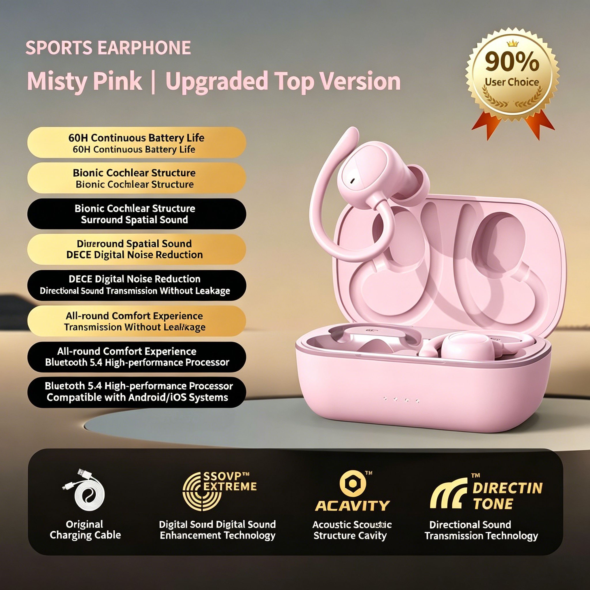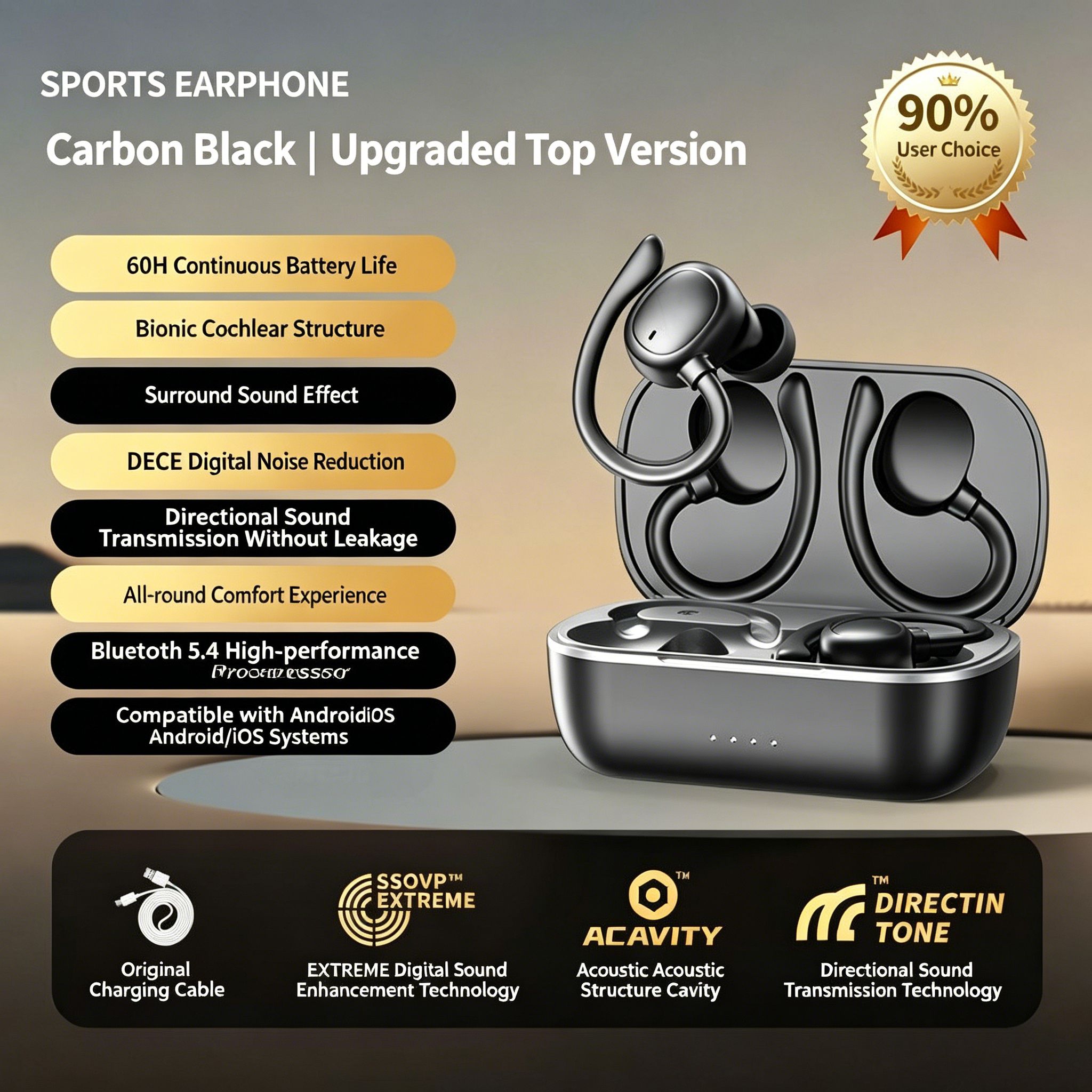 High Quality Wireless Ear-Mounted Bone Conduction Sports Running Headset New for Bluetooth Noise Reduction Super Long Life